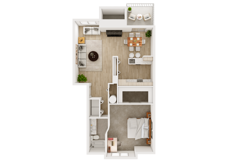 Modelo de apartamento: 1X1$1,7001 Dormitorio, 1 Baño, 762 sq ftDisponible March 15, 2026Los planos son representaciones artísticas. Todas las dimensiones son aproximadas. El producto y las especificaciones reales pueden variar en tamaño o detalle. No todas las características están disponibles en cada vivienda en alquiler. Por favor, consulta con un representante para obtener más detalles.