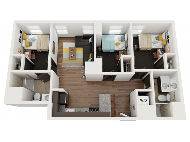 3 Dormitorios, 2 Baños, 865 pies²Disponible August 20, 2026Galería del Modelo