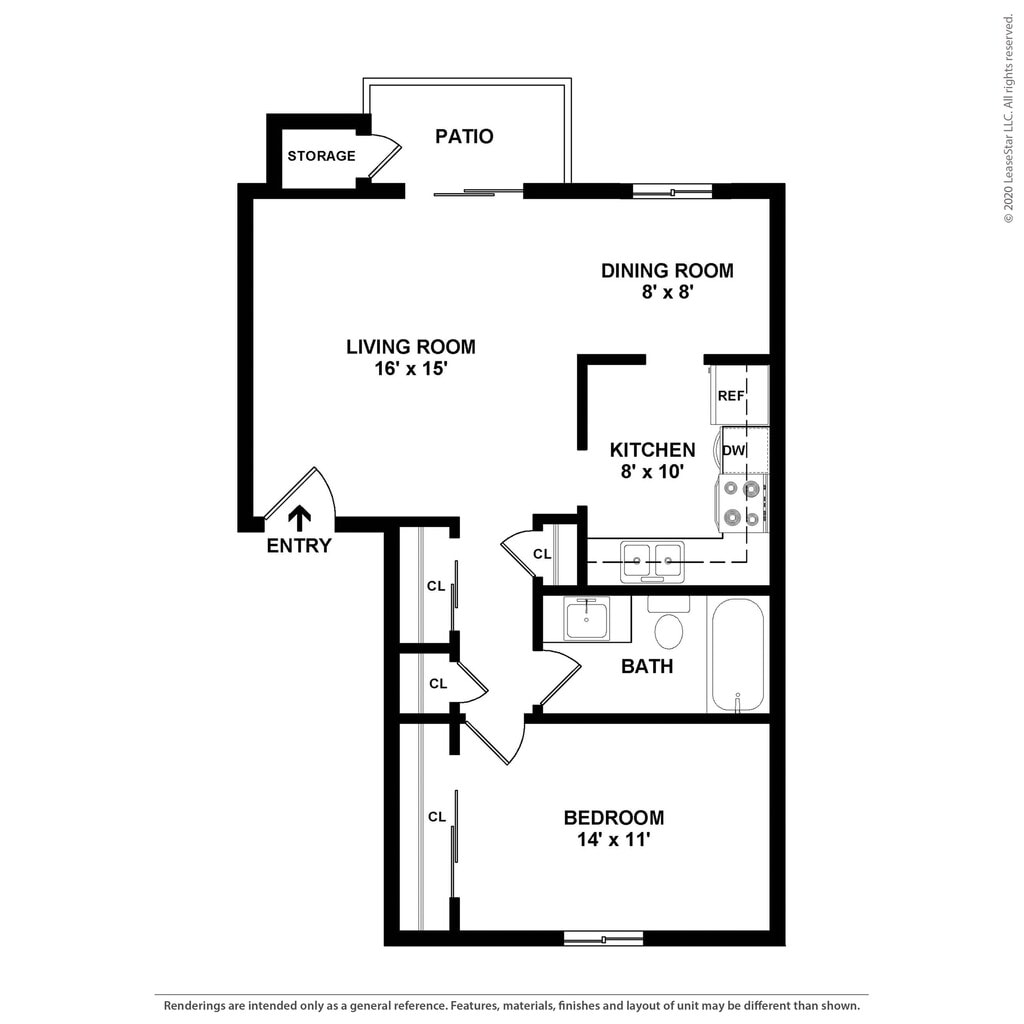 Modelo de apartamento: AcadiaLlame para PreciosEstudio, 1 Baño, 513 sq ftNo Disponible![]()