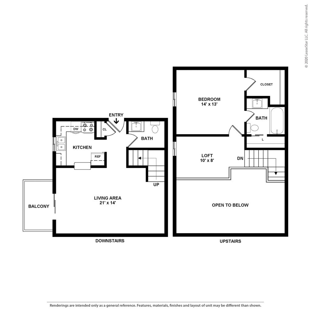 1 Dormitorio, 1 Baño, 726 pies²Disponible AhoraGalería del Modelo