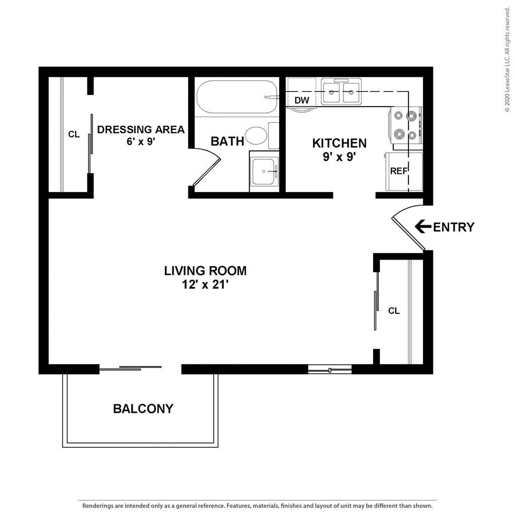 Estudio, 1 Baño, 513 pies²Galería del Modelo