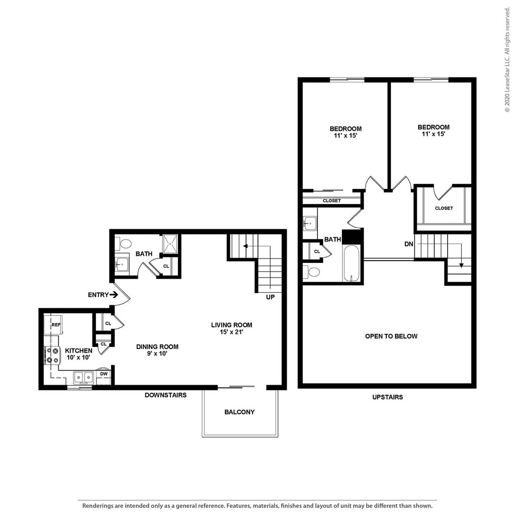 2 Dormitorios, 2 Baños, 1280 pies²Disponible AhoraGalería del Modelo