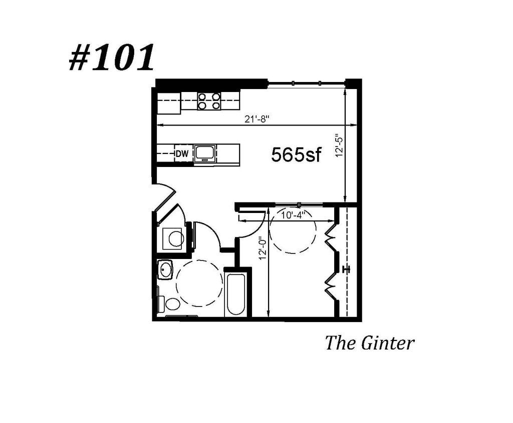Ginter - Plano 1 Unidad de apartamento: 101Modelo de apartamento: Ginter1 Dormitorio, 1 Baño, 565 sq ftDisponible February 5, 2026One Bed One Bath