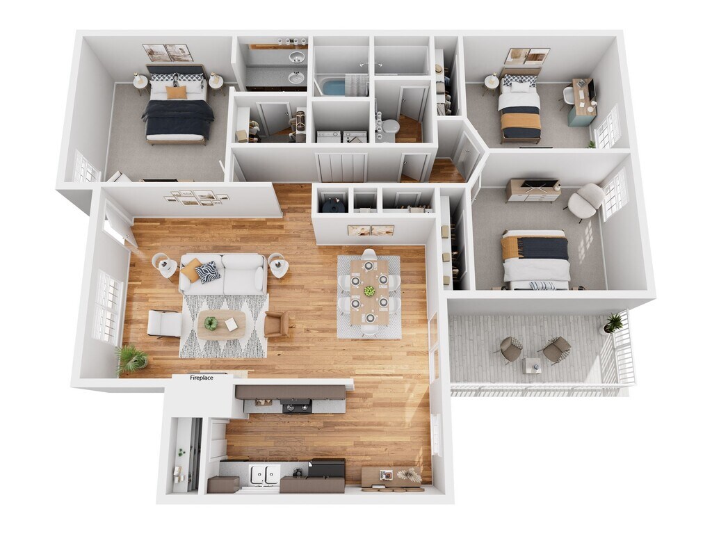 Modelo de apartamento: B2Desde $1,3652 Dormitorios, 2 Baños, 1163 sq ftDisponible November 7, 2025![]()