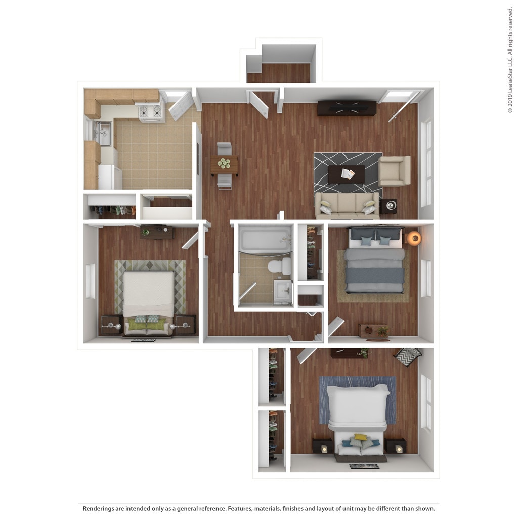 3 Dormitorios, 1 Baño, 956 pies²Galería del Modelo