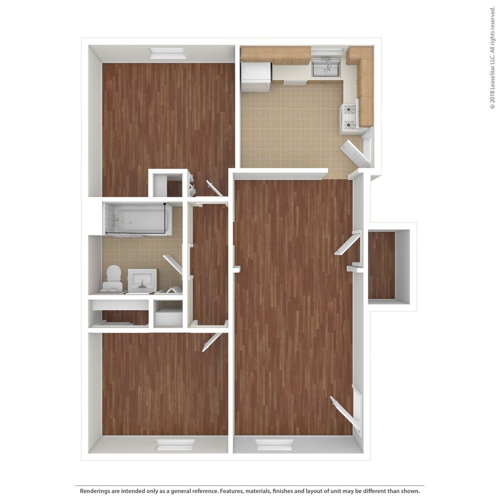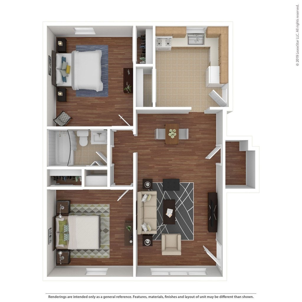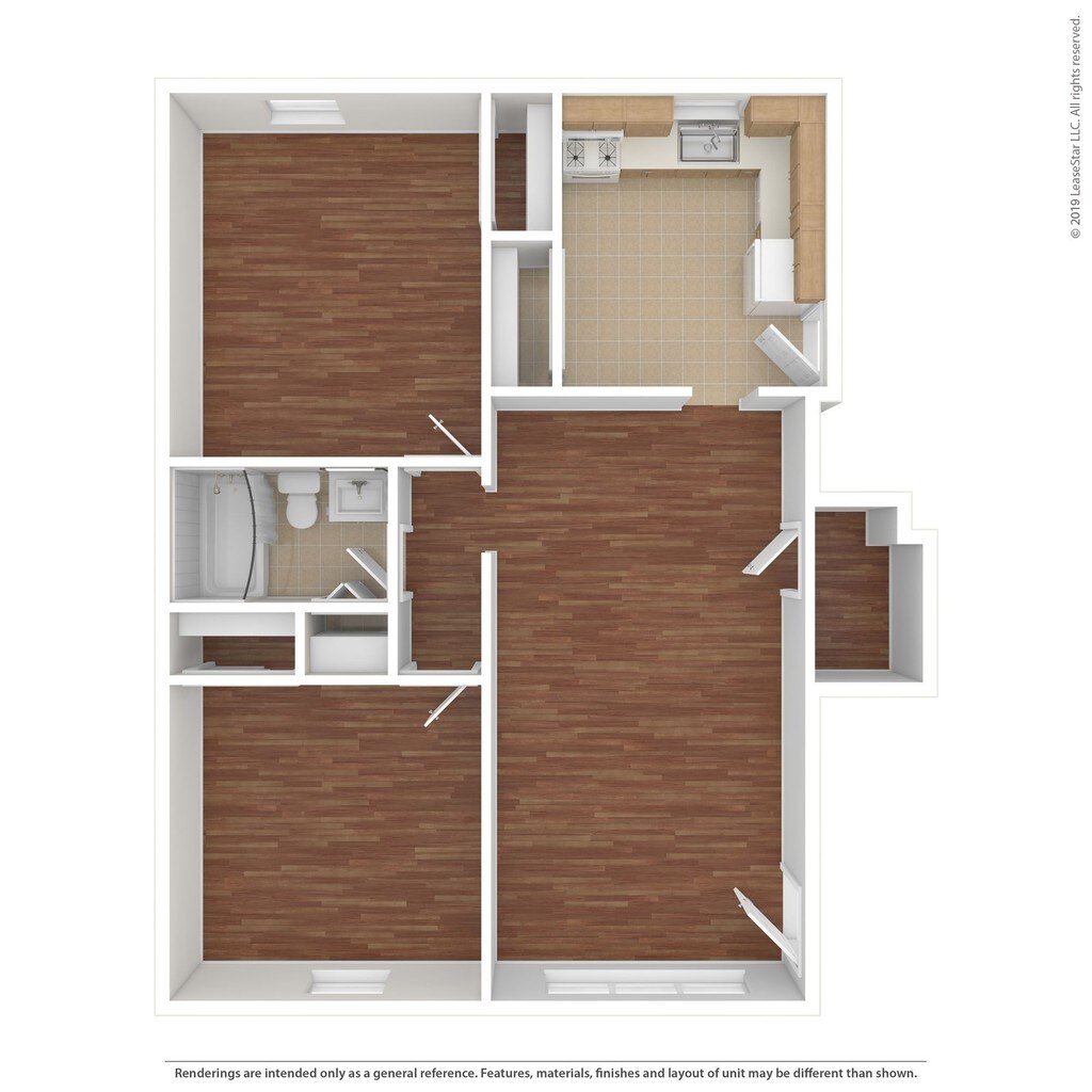 2 Dormitorios, 1 Baño, 757 pies²Galería del Modelo