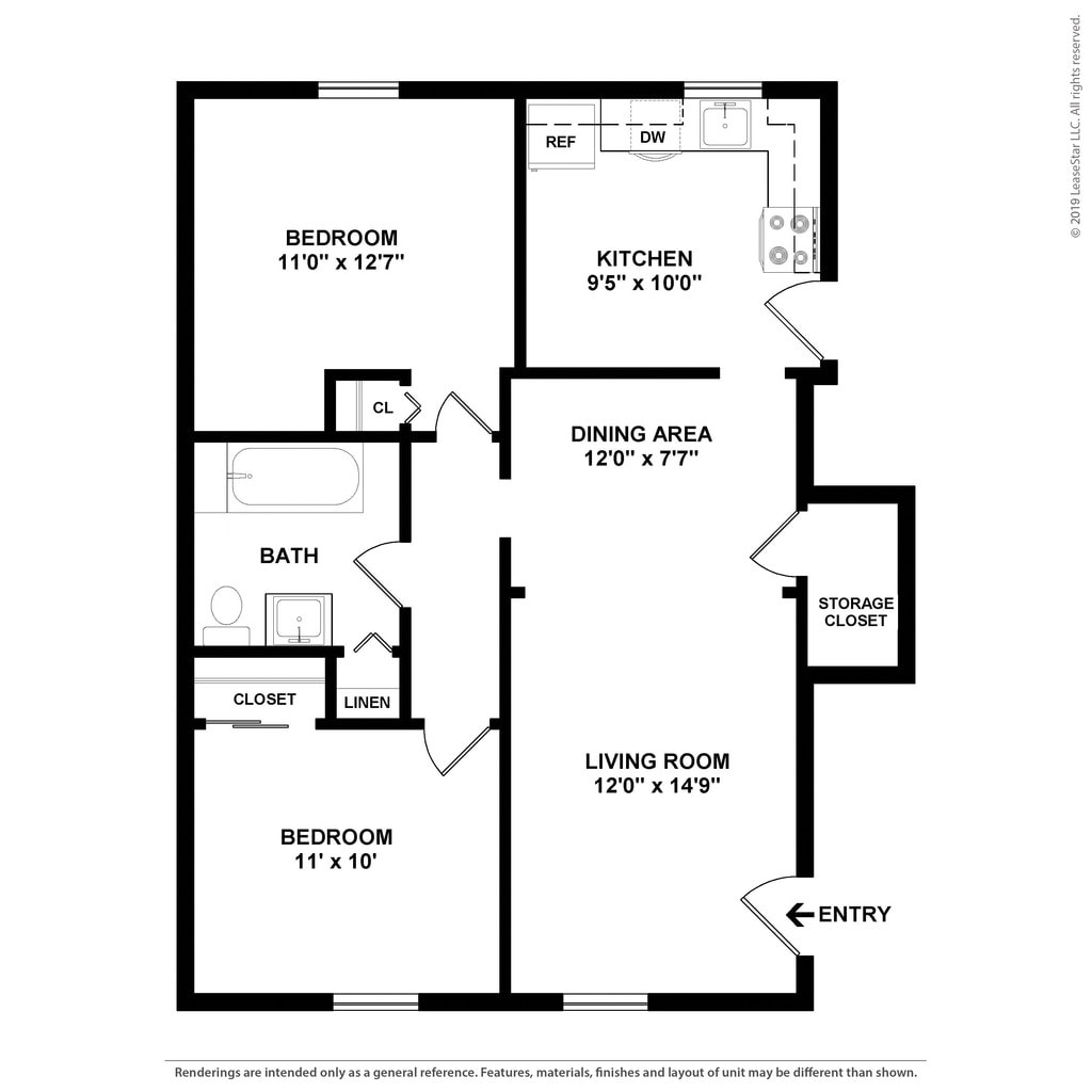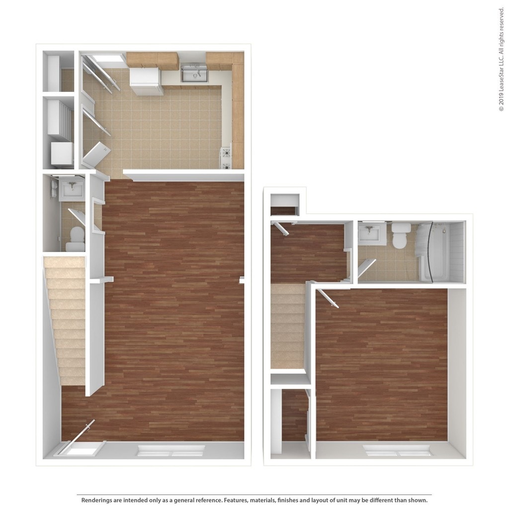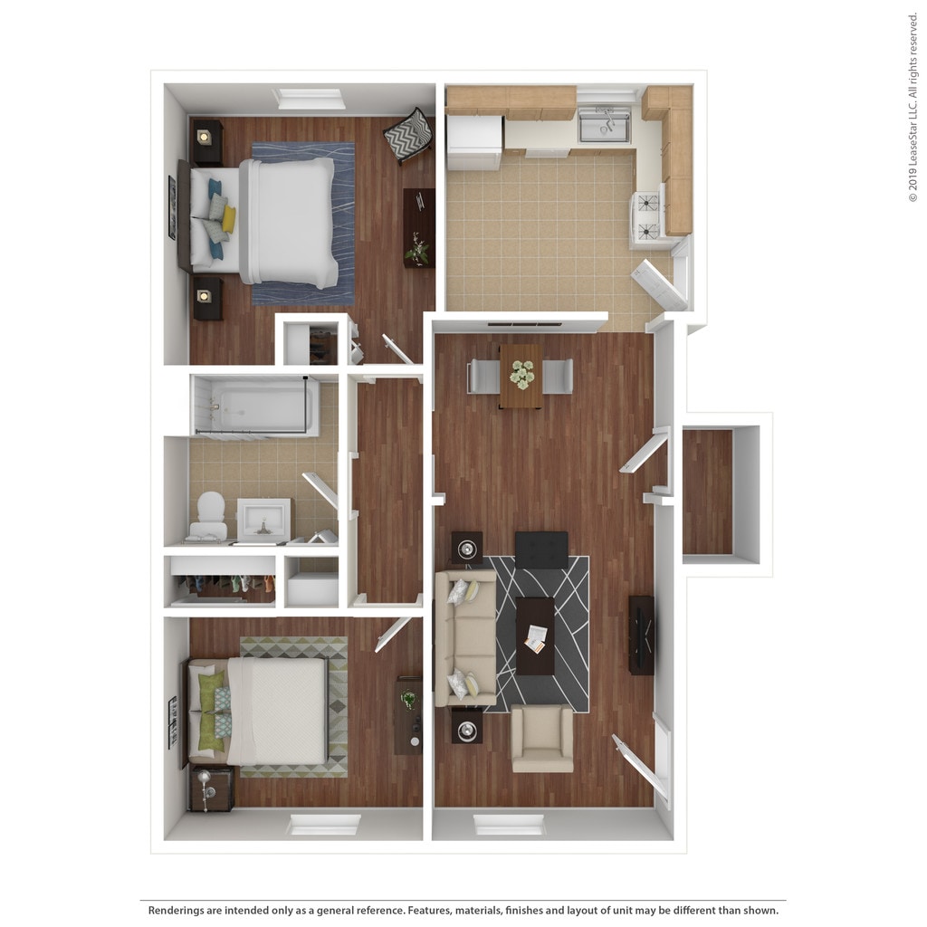 2 Dormitorios, 1 Baño, 757 pies²Galería del Modelo