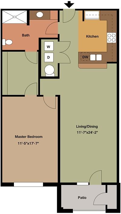 One Bed, One Bath - Plano 2 One Bed, One Bath