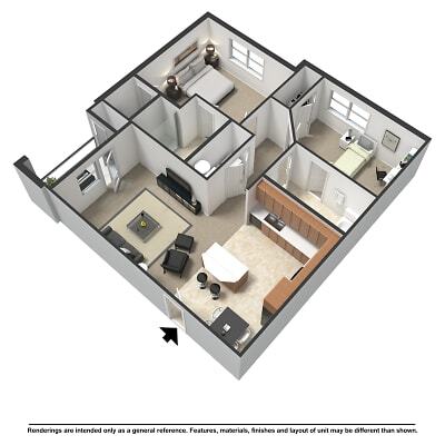 Modelo de apartamento: Two Bed, Two BathDesde $1,3972 Dormitorios, 2 Baños, 1085 sq ftDisponible November 28, 2025![]()