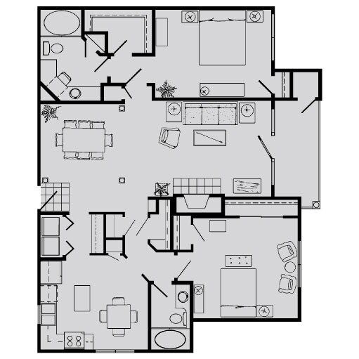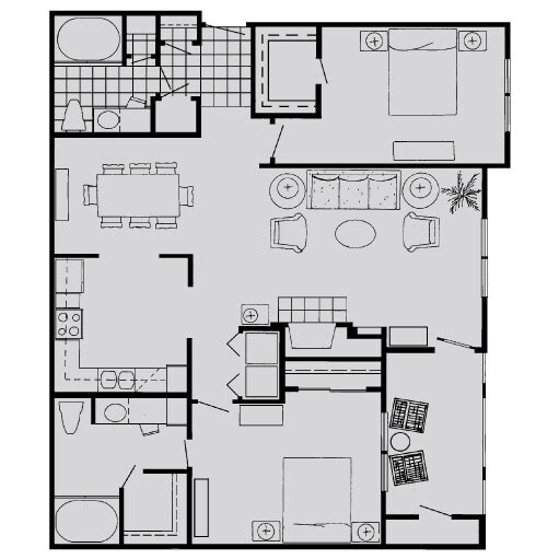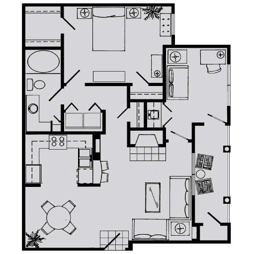 Modelo de apartamento: B1Desde $1,1851 Dormitorio, 1 Baño, 696 sq ftDisponible Ahora![]()
