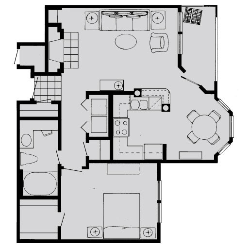 Modelo de apartamento: ADesde $1,1101 Dormitorio, 1 Baño, 620 sq ftDisponible Ahora![]()