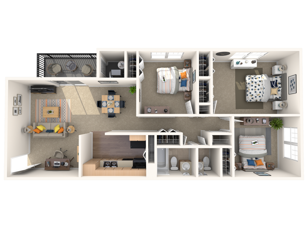 2 Dormitorios, 1 Baño, 850-960 pies²Disponible AhoraGalería del Modelo