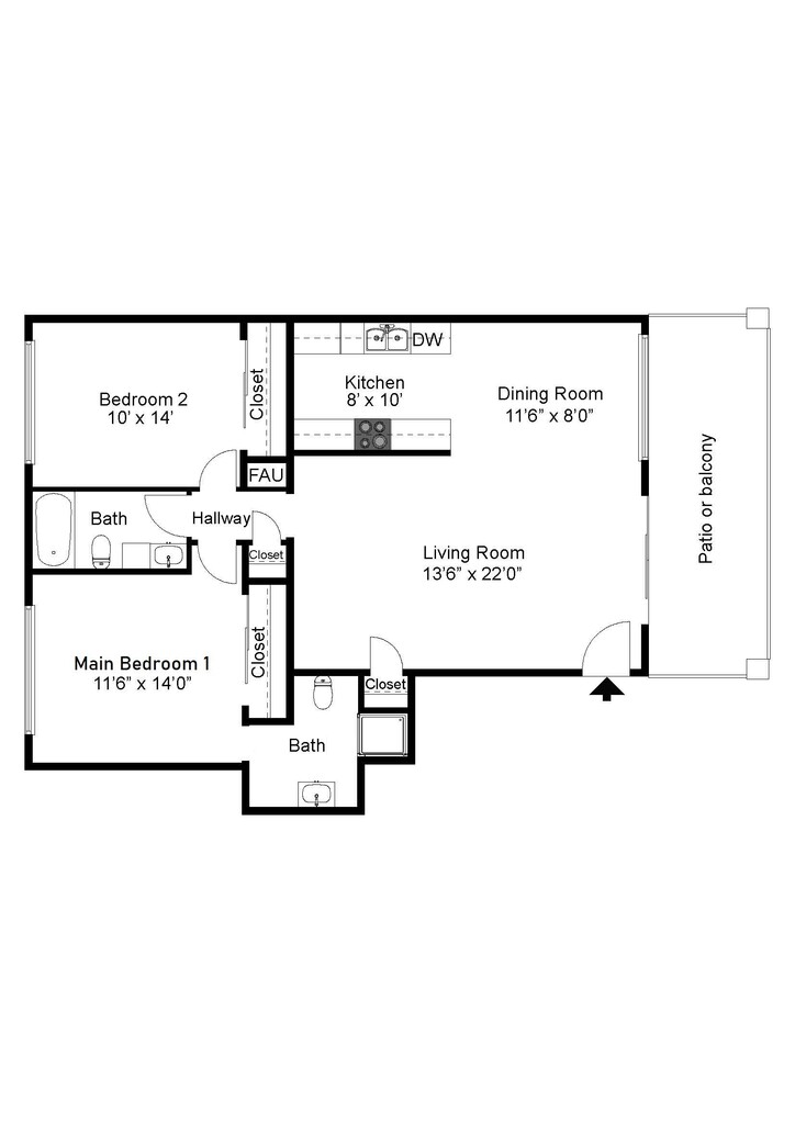 2 Dormitorios, 1 Baño, 960 pies²Disponible AhoraGalería del Modelo