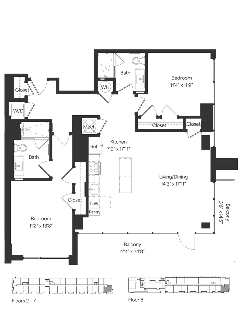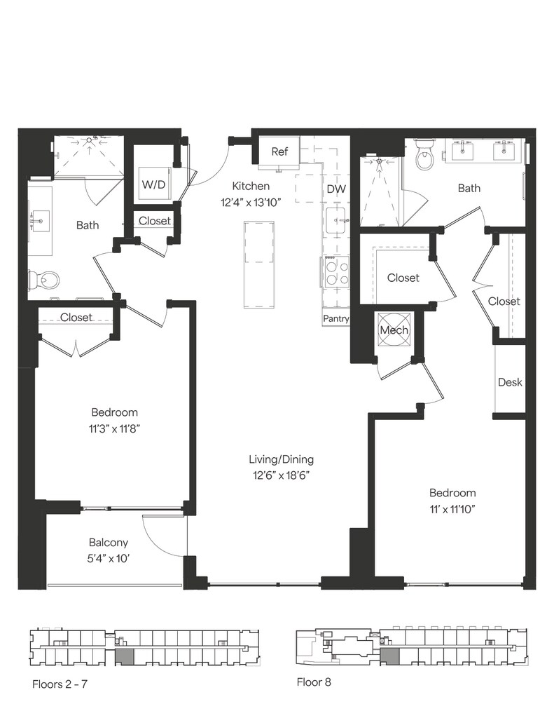 1 Dormitorio, 1 Baño, 732 pies²Disponible AhoraGalería del Modelo