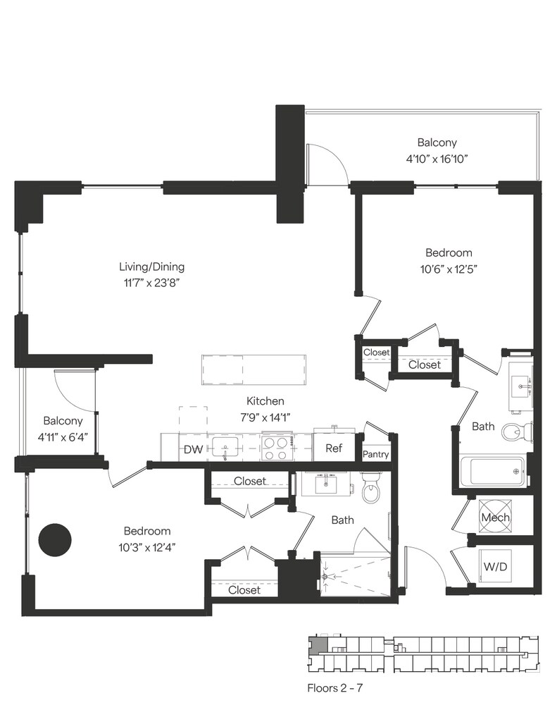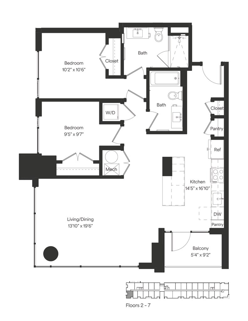 1 Dormitorio, 1 Baño, 742 pies²Disponible AhoraEl más grandeEsta opción tiene las unidades más grandes para este modeloGalería del Modelo