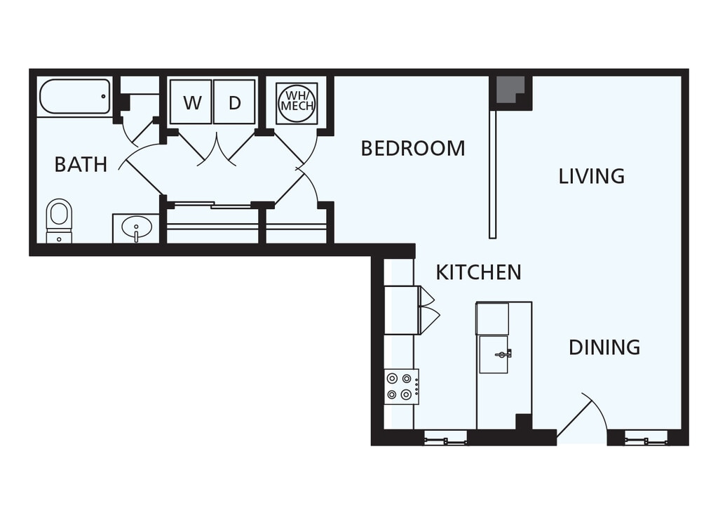 1 Dormitorio, 1 Baño, 855 pies²El más grandeEsta opción tiene las unidades más grandes para este modeloGalería del Modelo