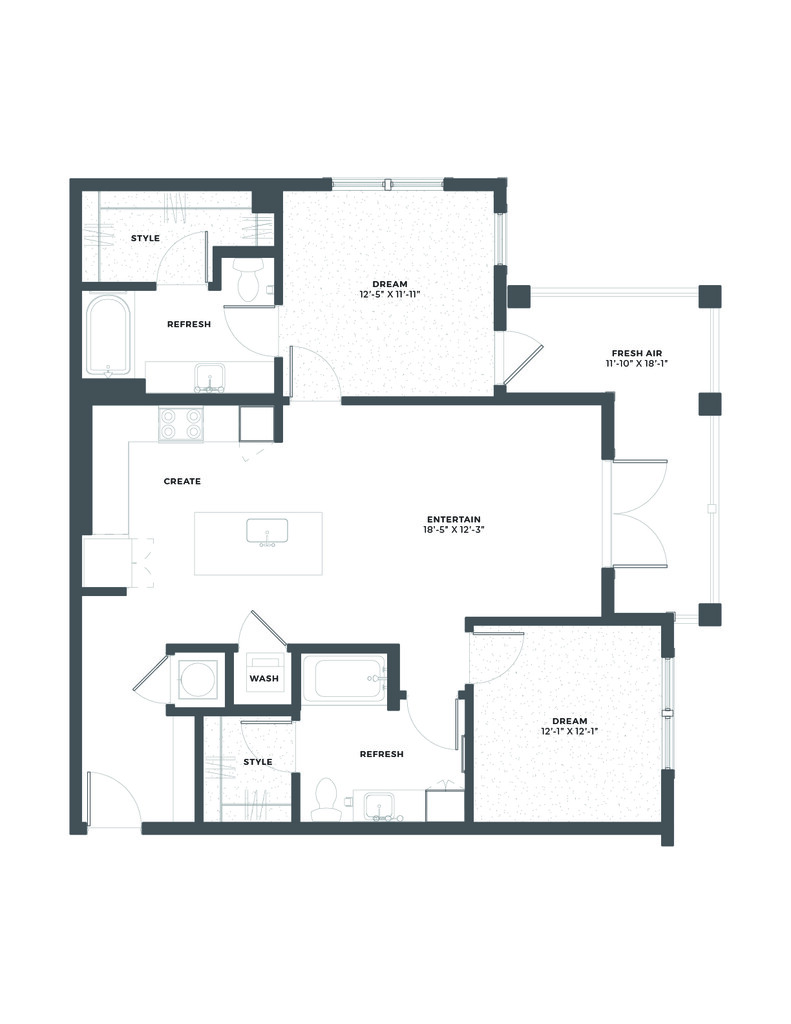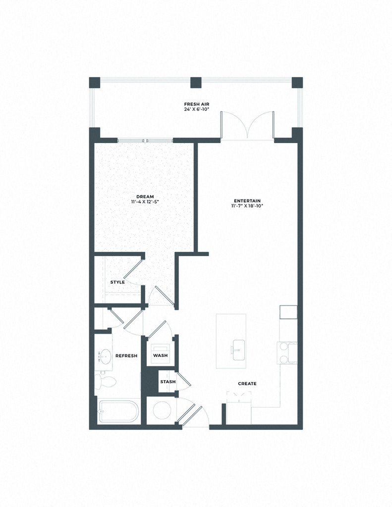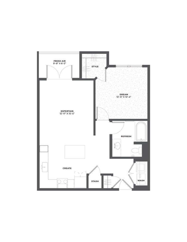 1 Dormitorio, 1 Baño, 788 pies²Disponible AhoraGalería del Modelo