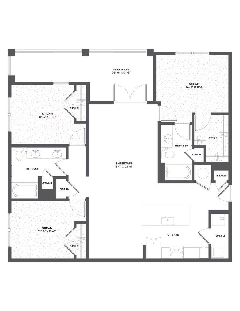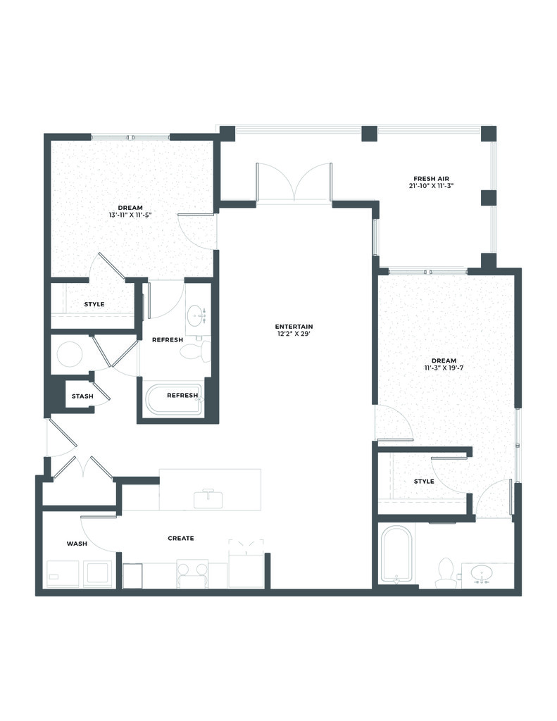 1 Dormitorio, 1 Baño, 850 pies²Disponible AhoraEl más grandeEsta opción tiene las unidades más grandes para este modeloGalería del Modelo