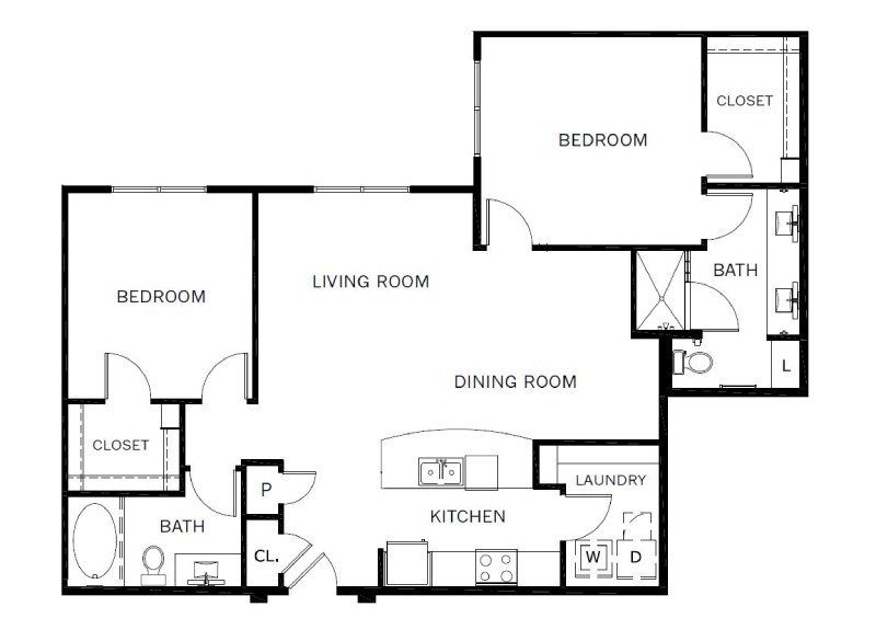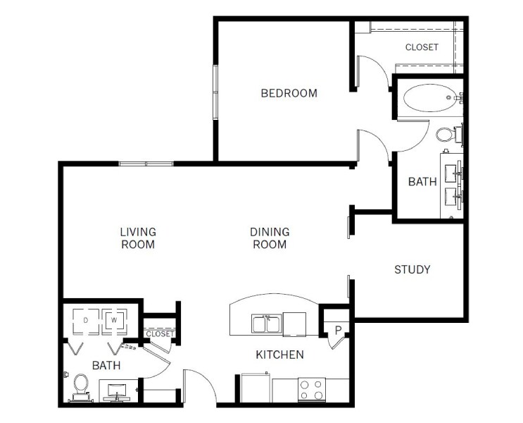 Modelo de apartamento: A1DDesde $1,0541 Dormitorio, 1 Baño, 820-890 sq ftDisponible Ahora![]()