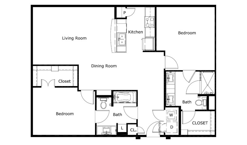 1 Dormitorio, 1 Baño, 820-890 pies²Disponible AhoraGalería del Modelo
