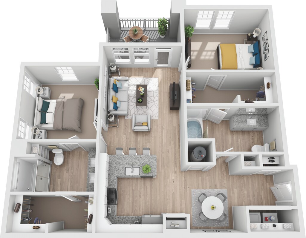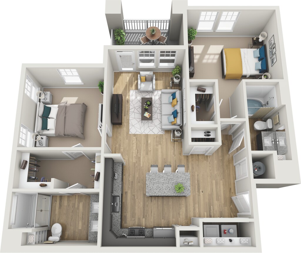 Modelo de apartamento: B2Desde $1,6772 Dormitorios, 2 Baños, 1211 sq ftDisponible Ahora![]()