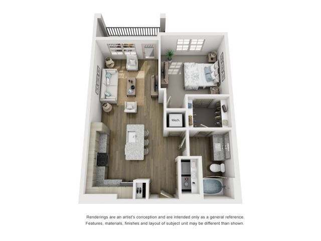 Modelo de apartamento: A1.1Desde $1,4951 Dormitorio, 1 Baño, 757 sq ftDisponible Ahora![]()