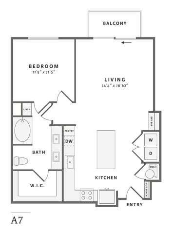 Estudio, 1 Baño, 624 pies²Precio Mensual TotalDisponible AhoraEl más grandeEsta opción tiene las unidades más grandes para este modeloGalería del Modelo
