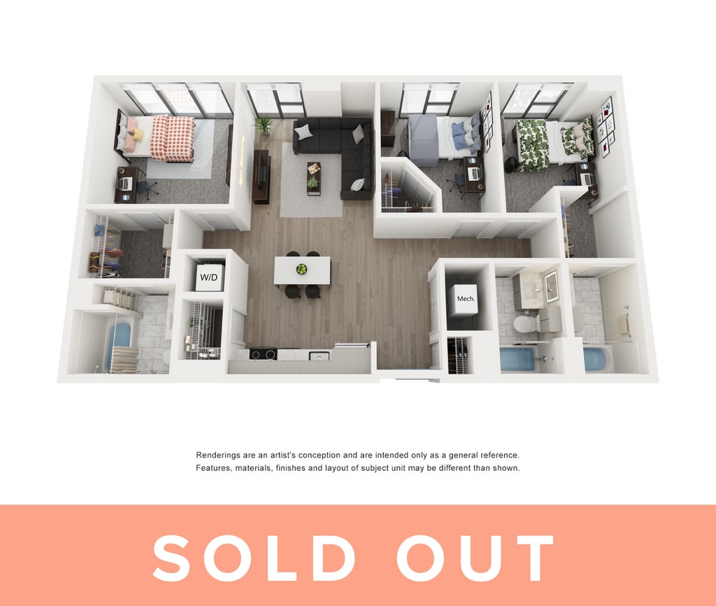 3 Dormitorios, 3 Baños, 1131 pies²Precio Mensual TotalDisponible AhoraGalería del Modelo