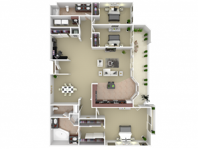 Modelo de apartamento: 1x1CDesde $1,7141 Dormitorio, 1 Baño, 842 sq ftDisponible Ahora![]()