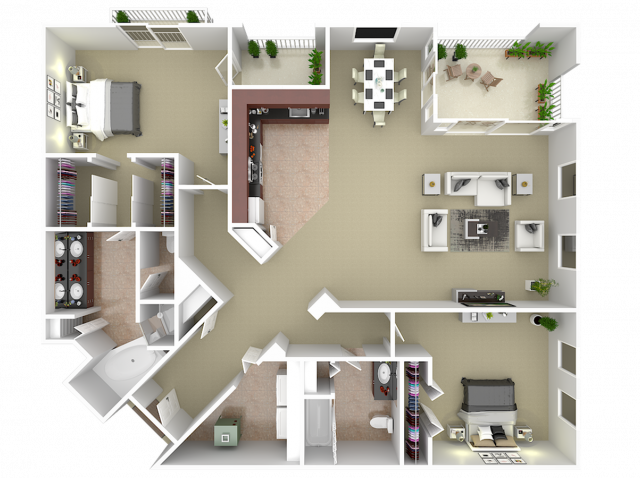 Modelo de apartamento: 1x1FDesde $1,6221 Dormitorio, 2 Baños, 1195 sq ftDisponible Ahora![]()