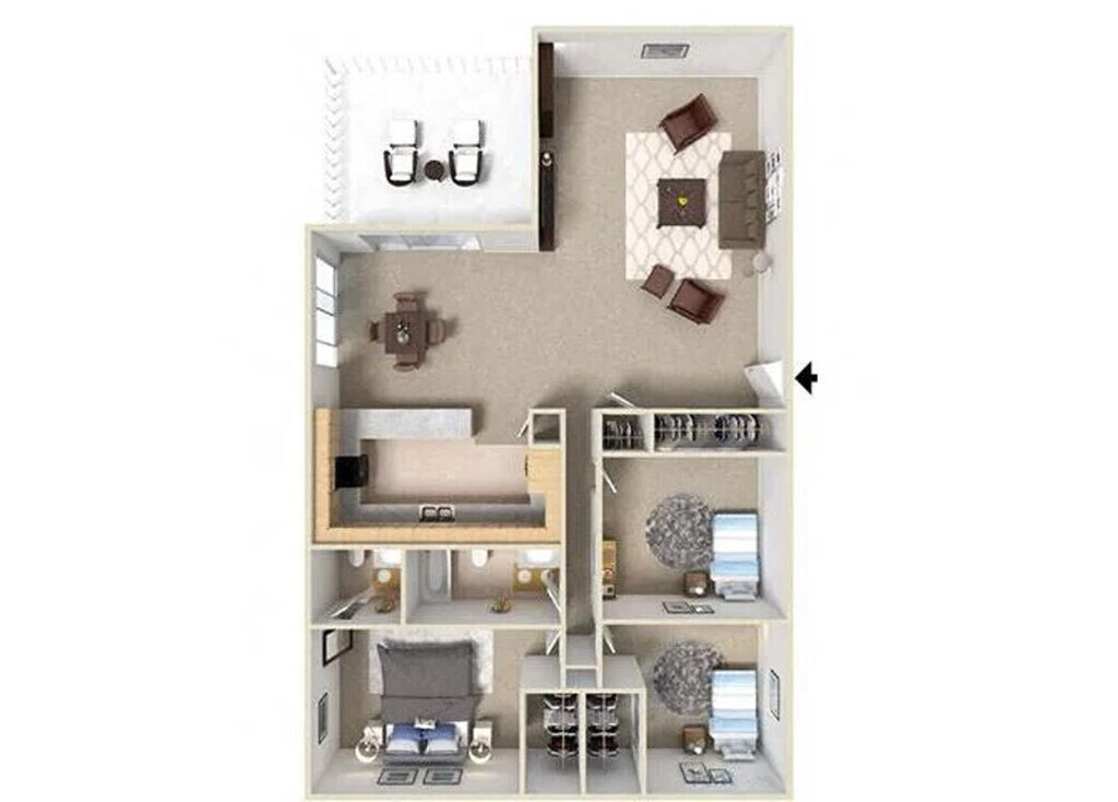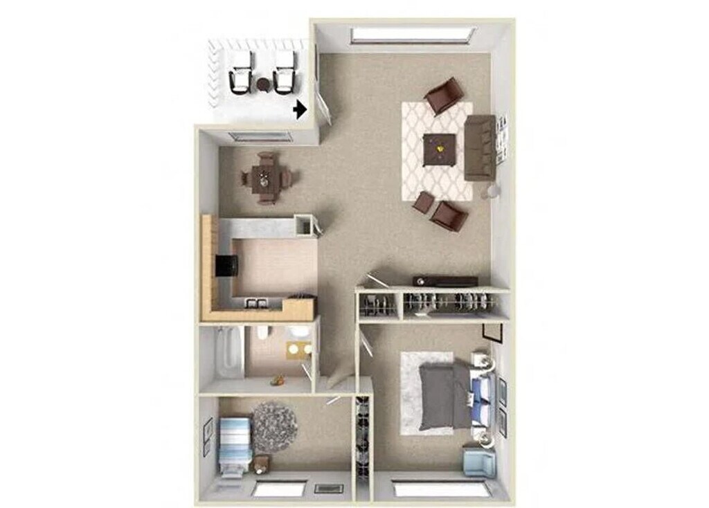 2 Dormitorios, 1 Baño, 875 pies²Disponible AhoraGalería del Modelo