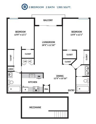 Modelo de apartamento: B Floor Plan$3,1302 Dormitorios, 2 Baños, 1365 sq ftNo Disponible![]()