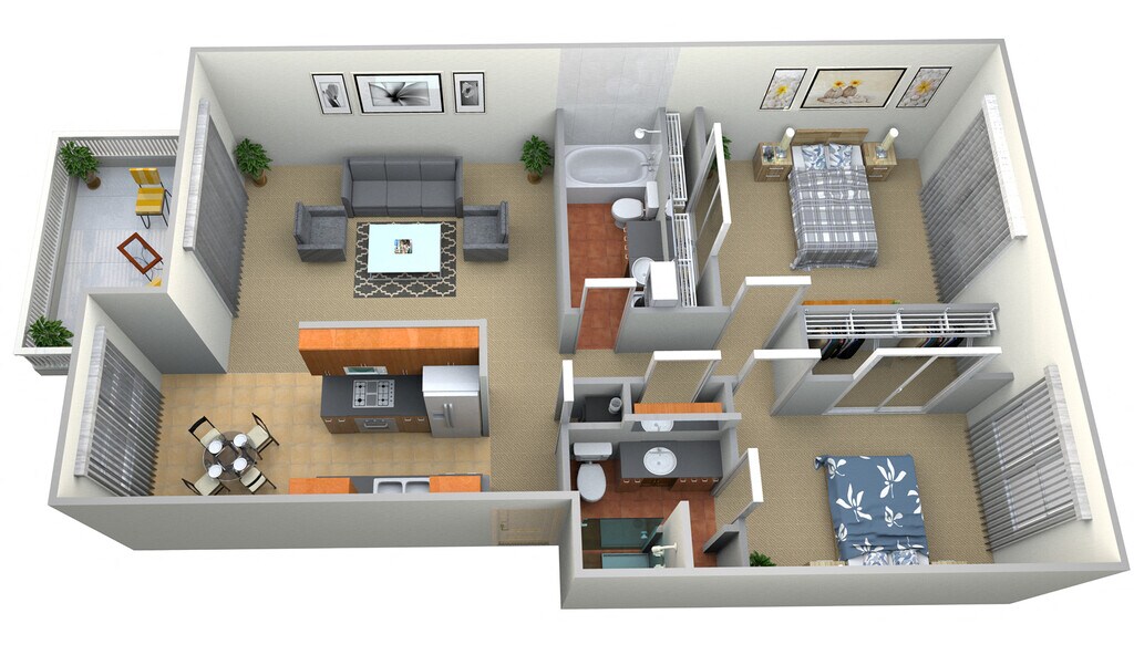 Modelo de apartamento: PLAN DLlame para Precios2 Dormitorios, 1 Baño, 850 sq ftNo Disponible![]()