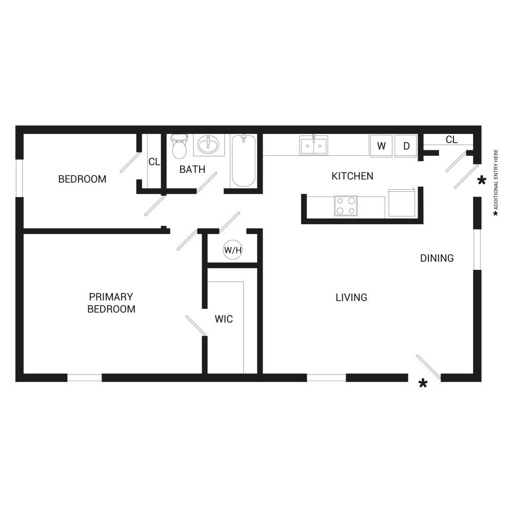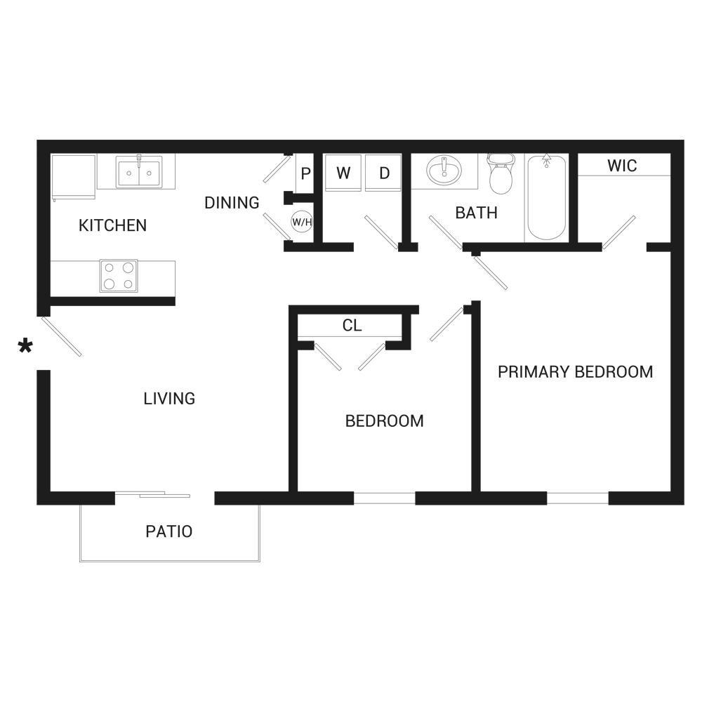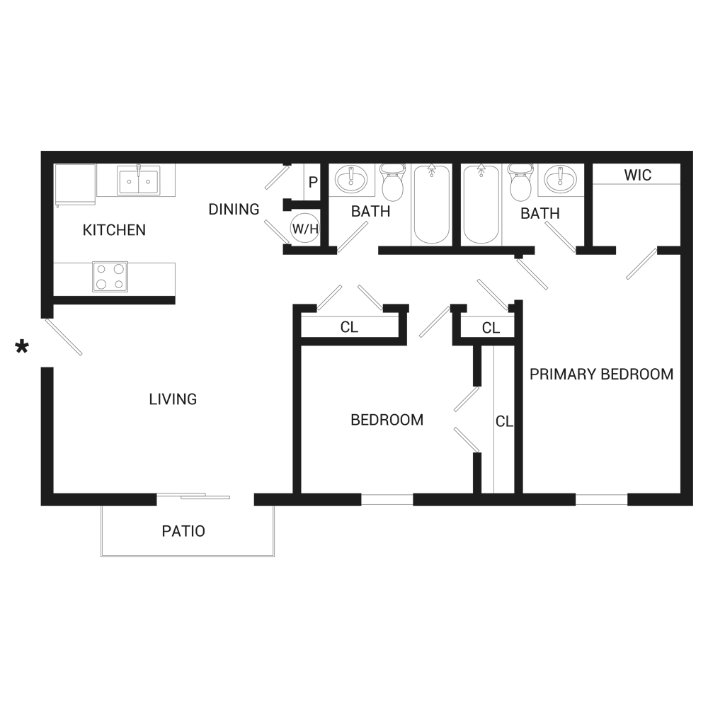 2 Dormitorios, 1.5 Baños, 1000 pies²El más grandeEsta opción tiene las unidades más grandes para este modeloGalería del Modelo