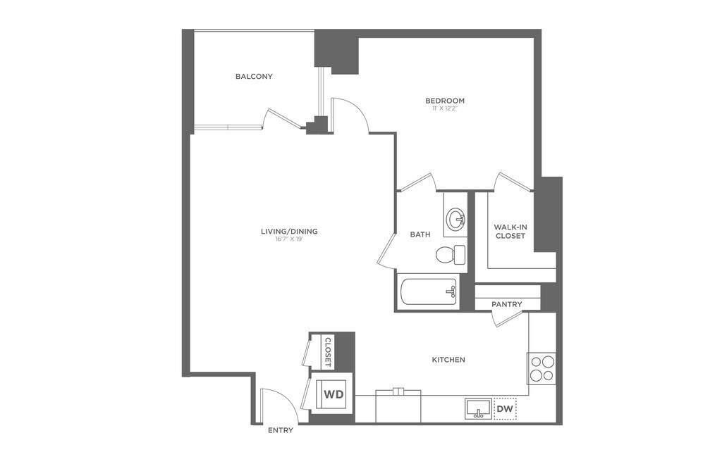 Modelo de apartamento: AD1Desde $3,0261 Dormitorio, 1 Baño, 821 sq ftDisponible AhoraLos planos son representaciones artísticas. Todas las dimensiones son aproximadas. El producto y las especificaciones reales pueden variar en tamaño o detalle. No todas las características están disponibles en cada vivienda en alquiler. Por favor, consulta con un representante para obtener más detalles.