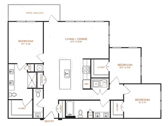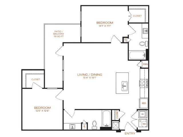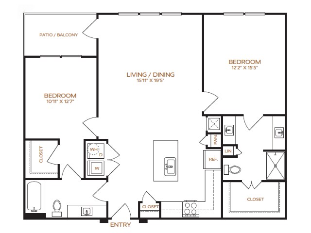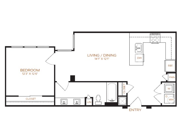 Modelo de apartamento: 1 Bed, 1 BathDesde $1,3631 Dormitorio, 1 Baño, 611 sq ftDisponible Ahora![]()