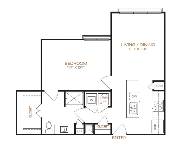 1 Dormitorio, 1 Baño, 611 pies²Disponible AhoraGalería del Modelo