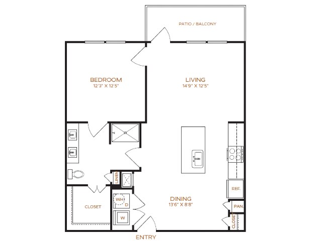 1 Dormitorio, 1 Baño, 611 pies²Precio Mensual TotalDisponible AhoraGalería del Modelo