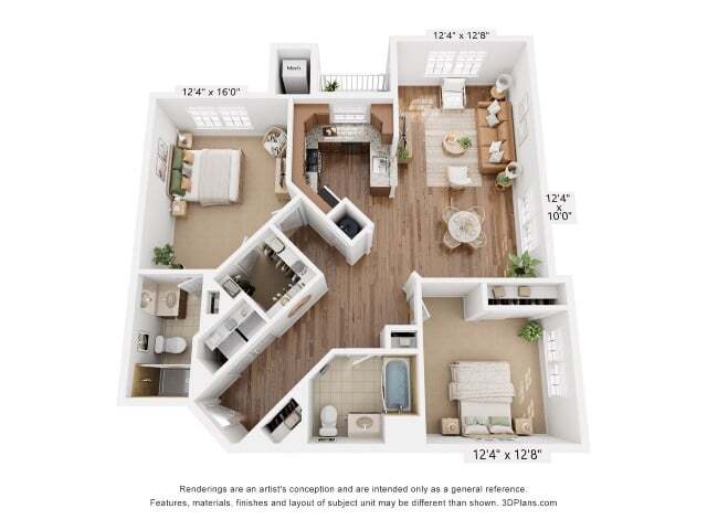 Modelo de apartamento: BayberryDesde $2,0511 Dormitorio, 1 Baño, 724 sq ftDisponible Ahora![]()