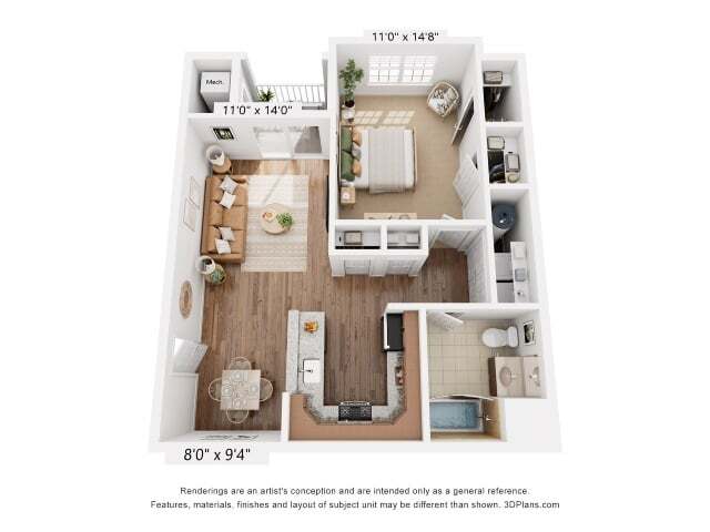 1 Dormitorio, 1 Baño, 845 pies²Disponible AhoraGalería del Modelo