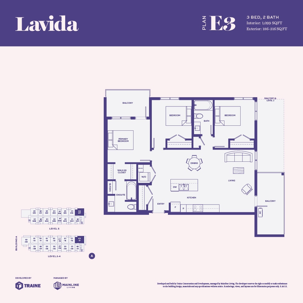 Lavida ofrece apartamentos de Estudio a 3 Dormitorios desde $1,599 con 377–1,222 pies cuadrados. Aquí está el precio actual y la disponibilidad: