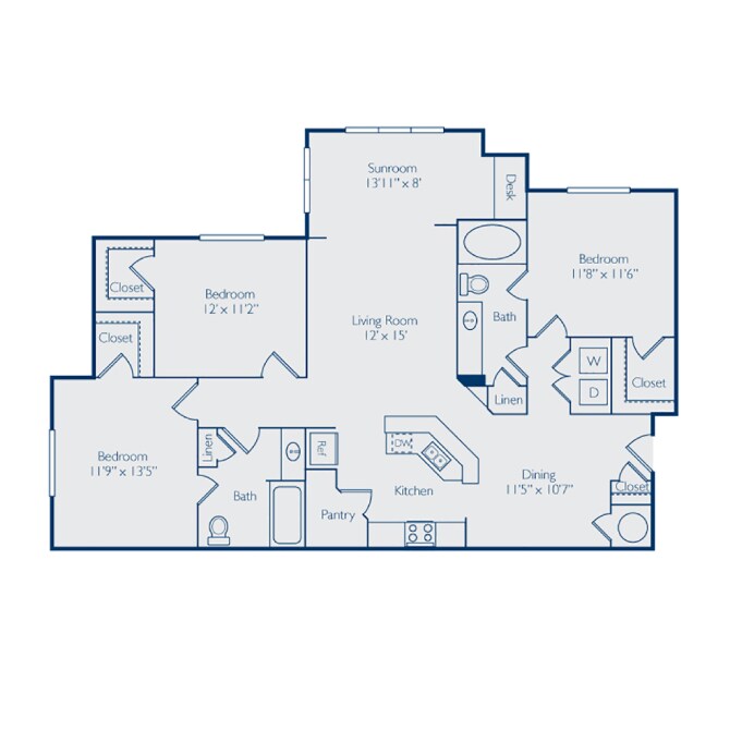 Modelo de apartamento: One BedroomDesde $1,5091 Dormitorio, 1 Baño, 896-911 sq ftDisponible Ahora![]()