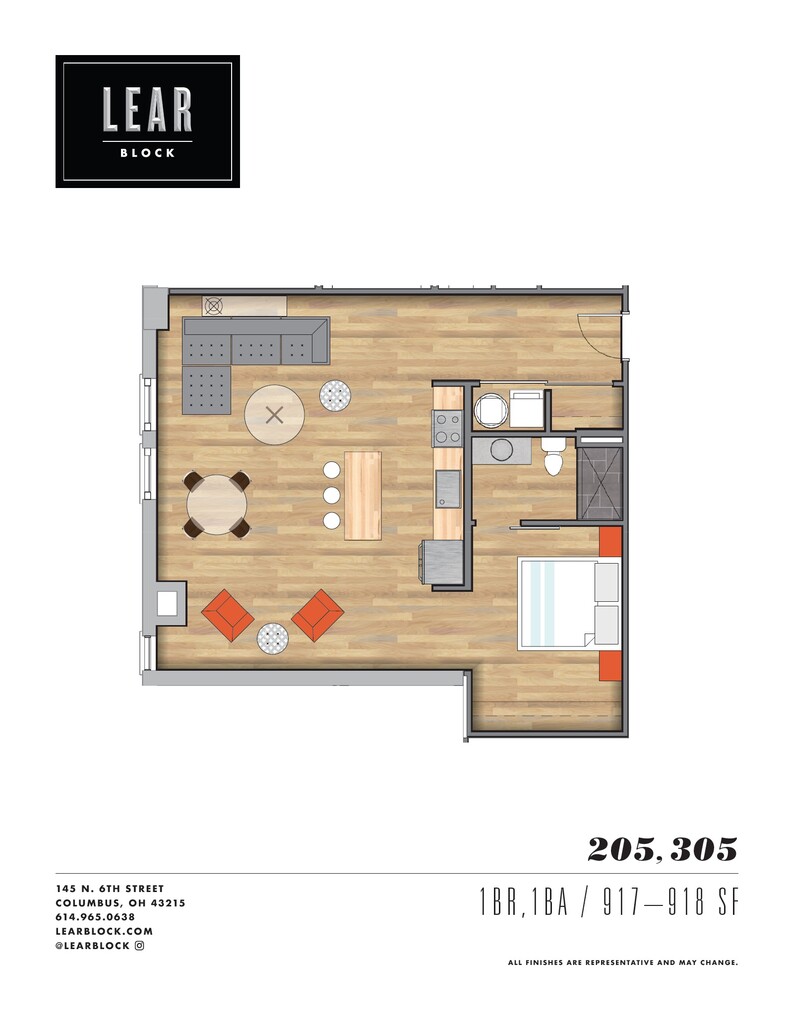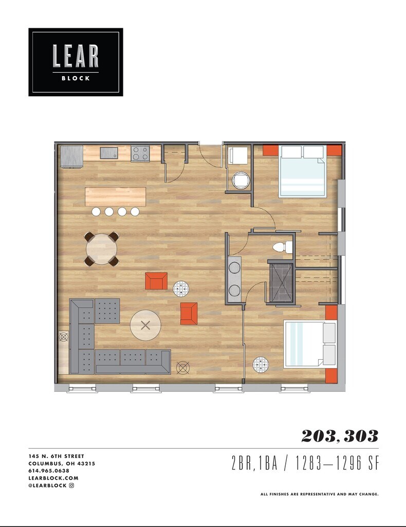 Lear Block 203 & 303 - Imagen 3 Unidad de apartamento: 203Modelo de apartamento: Lear Block 203 & 303$2,0952 Dormitorios, 1 Baño, 1283 sq ftDisponible November 11, 2025
