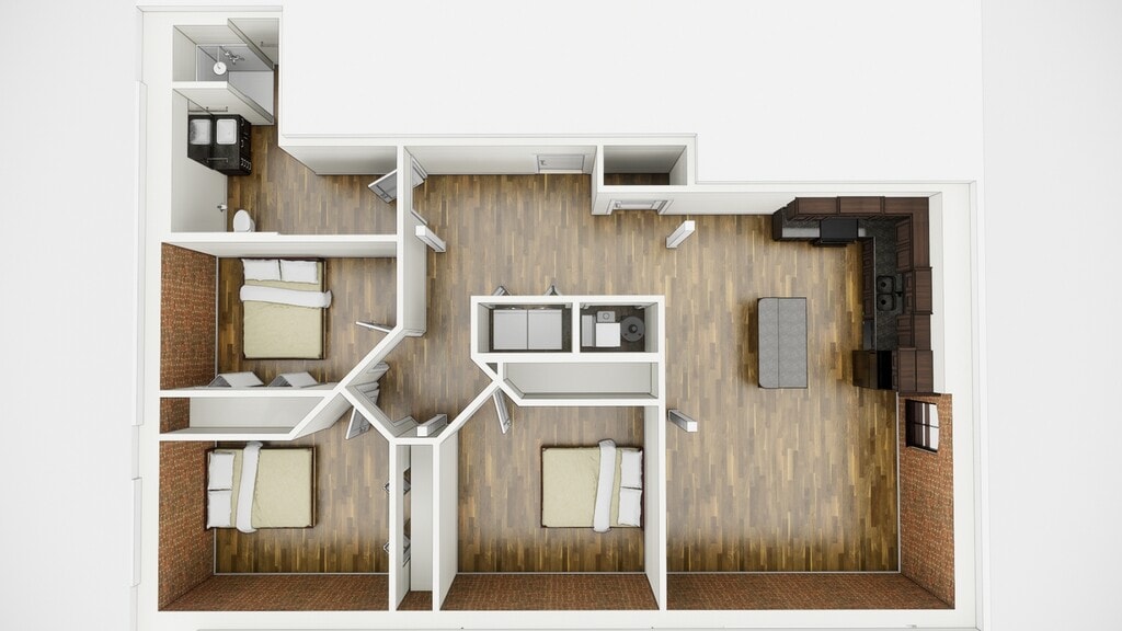 Modelo de apartamento: 3B1B MktLlame para Precios3 Dormitorios, 1 Baño, 1295 sq ftNo Disponible![]()