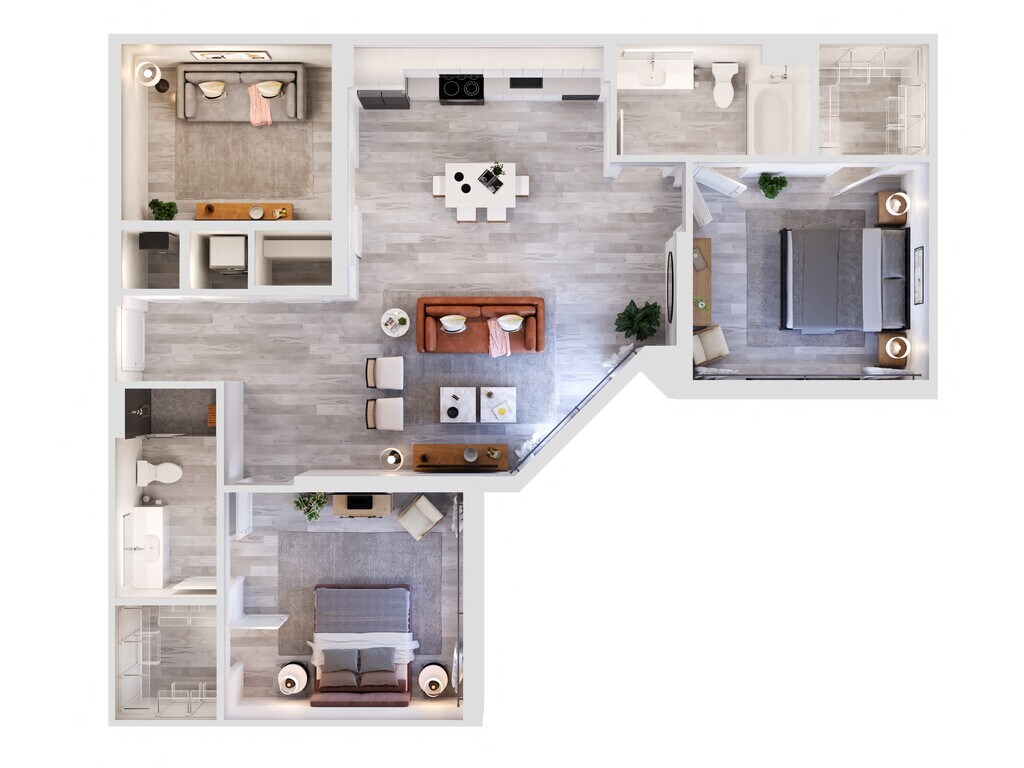 Modelo de apartamento: A1.2Desde $2,5941 Dormitorio, 1 Baño, 692 sq ftDisponible Ahora![]()