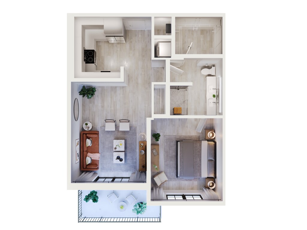 1 Dormitorio, 1 Baño, 704-711 pies²Disponible AhoraGalería del Modelo