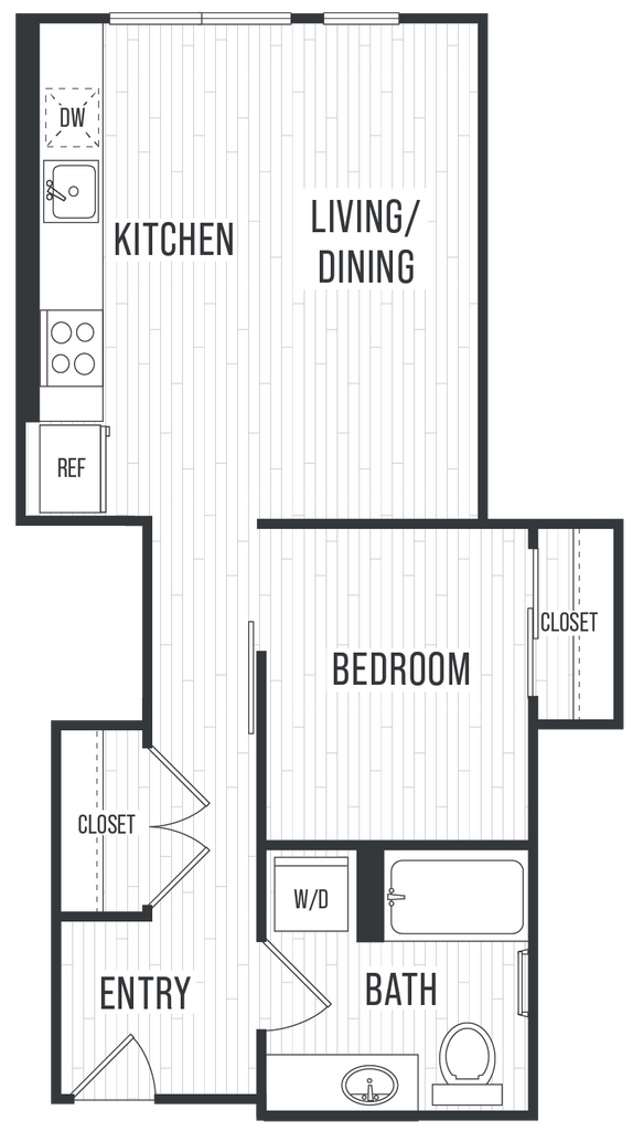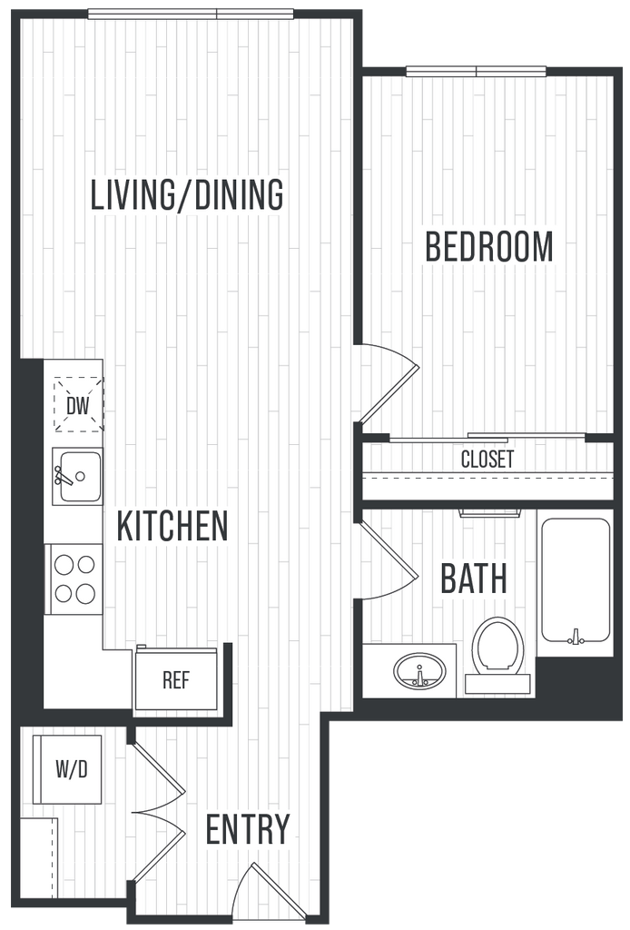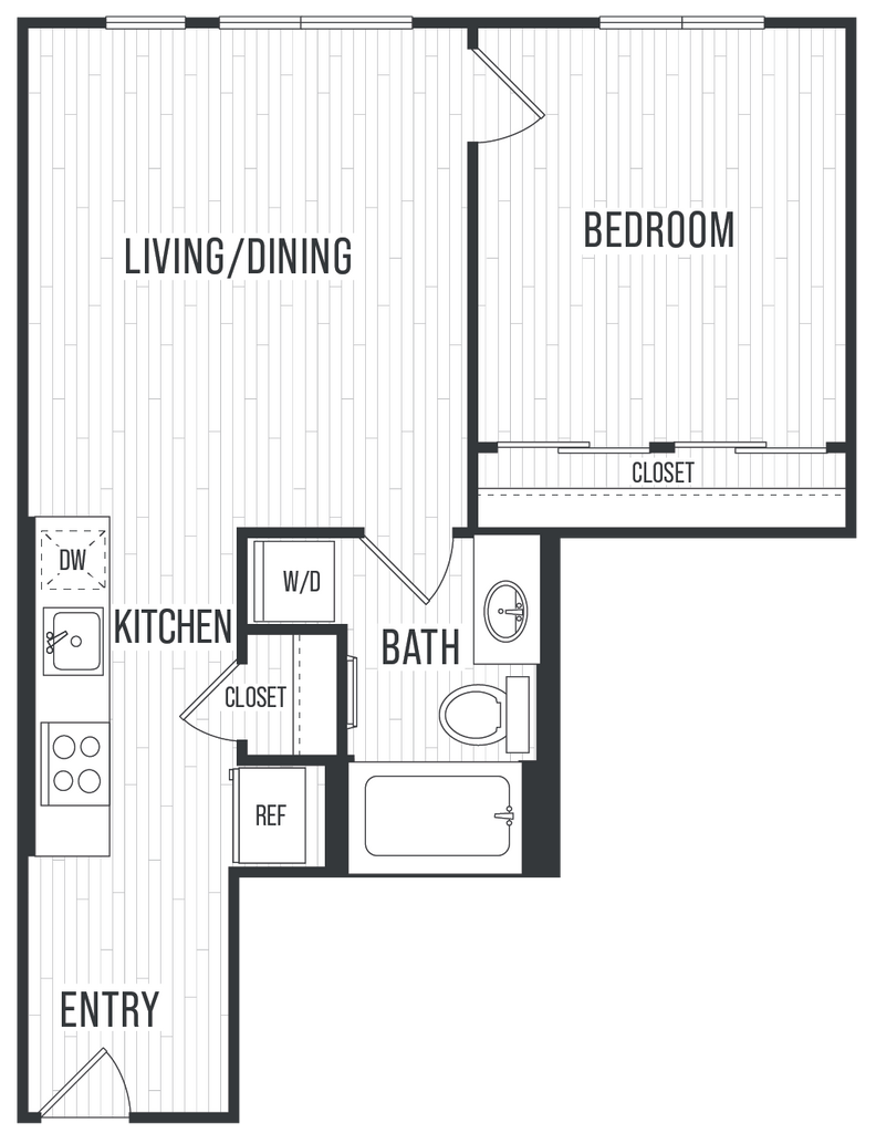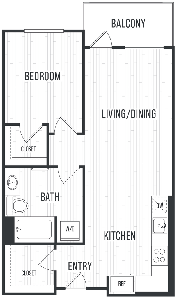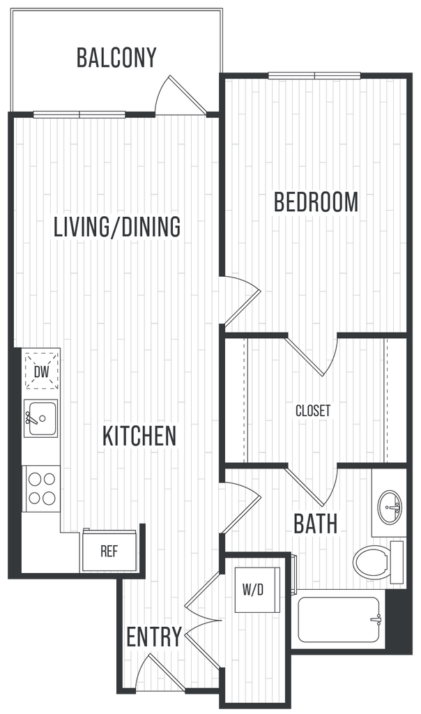 1 Dormitorio, 1 Baño, 727 pies²Disponible AhoraGalería del Modelo