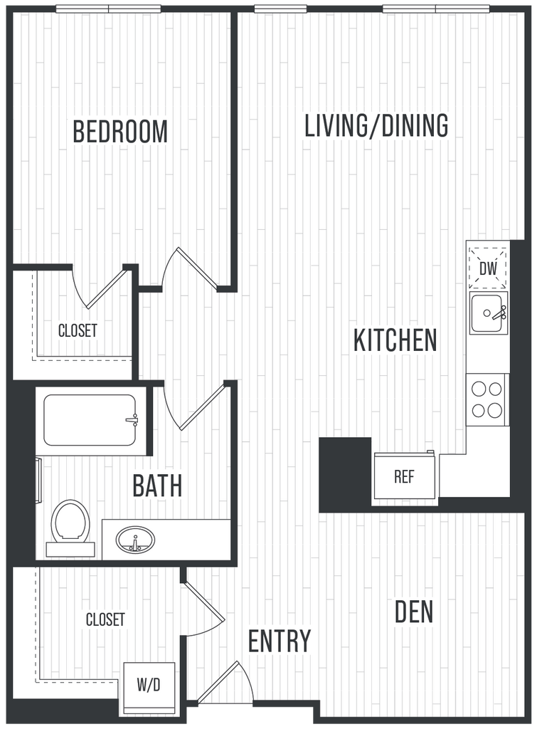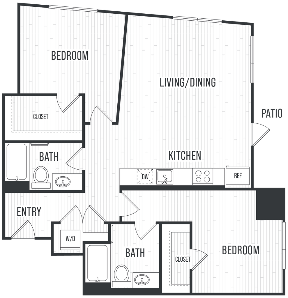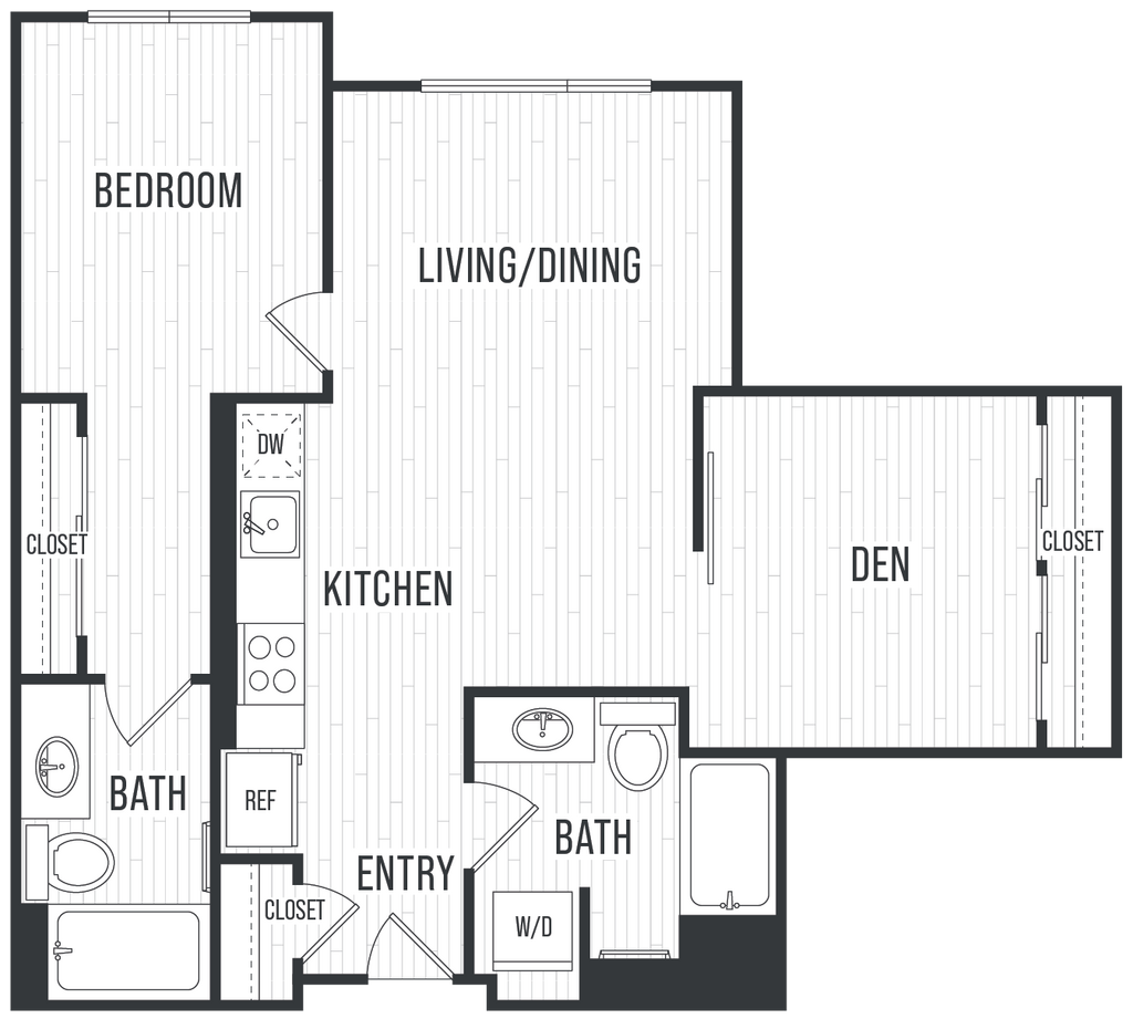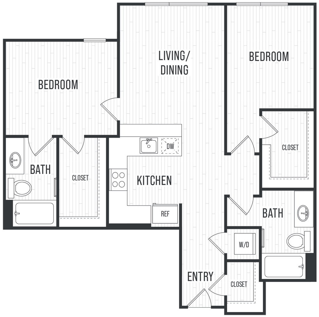 Modelo de apartamento: 1JDesde $2,6491 Dormitorio, 1 Baño, 727 sq ftDisponible Ahora![]()