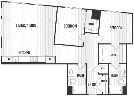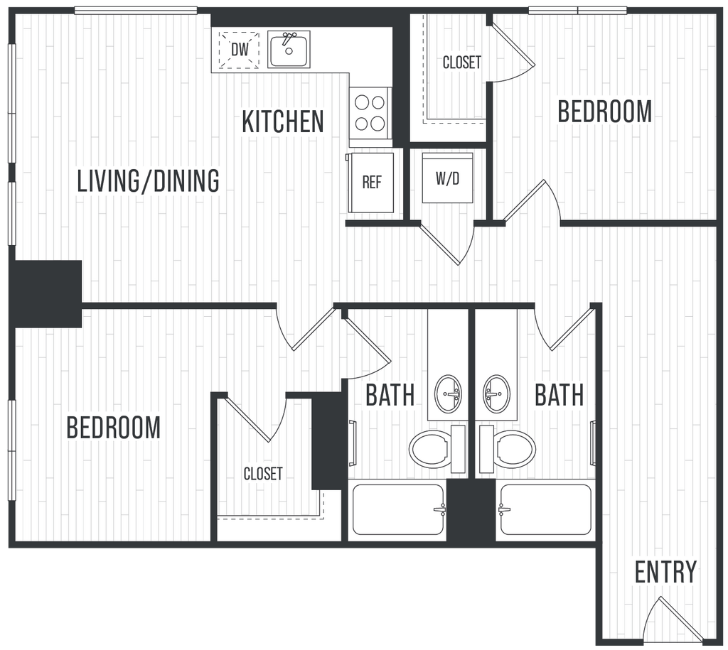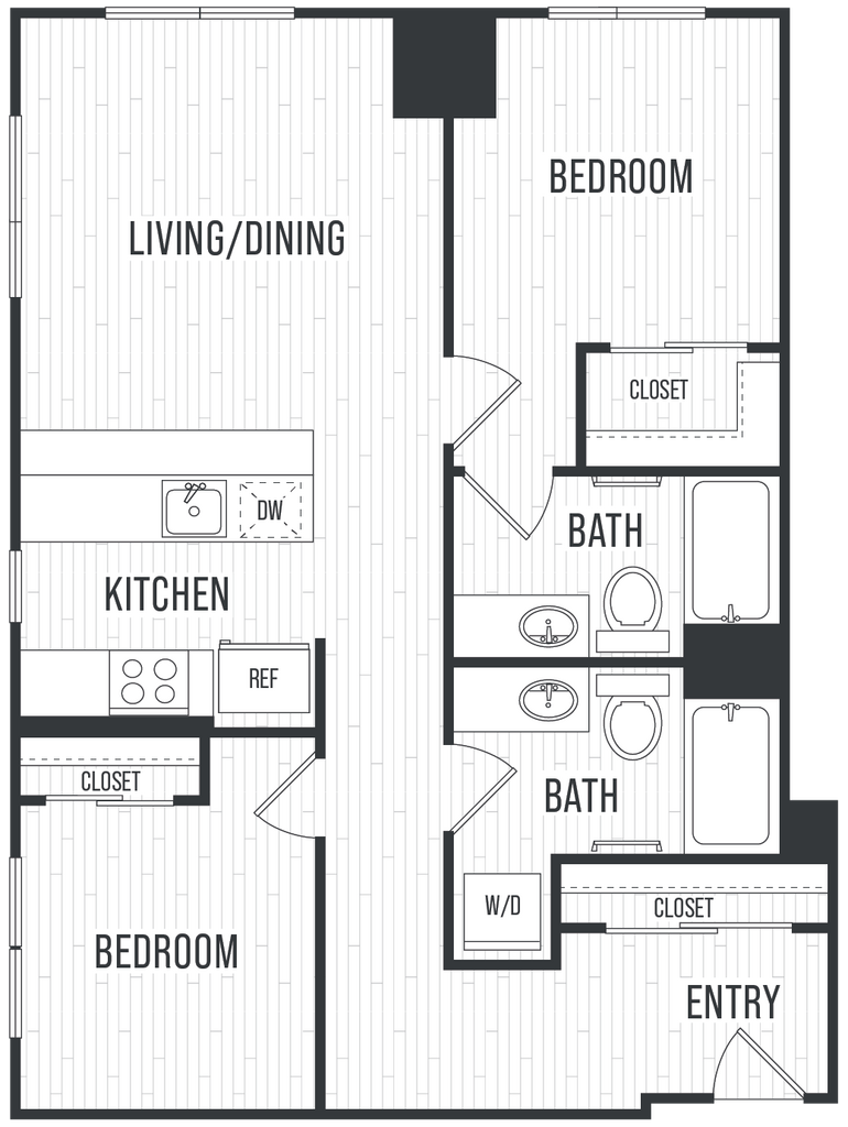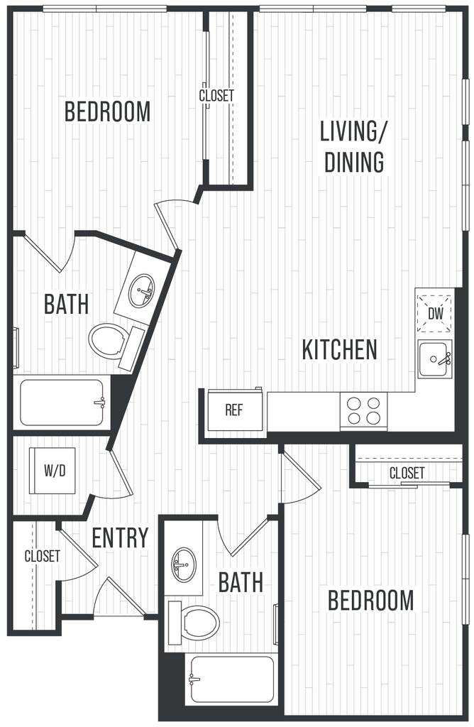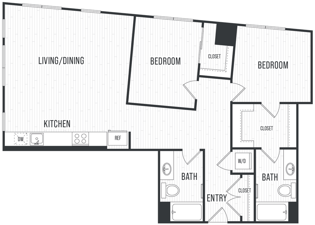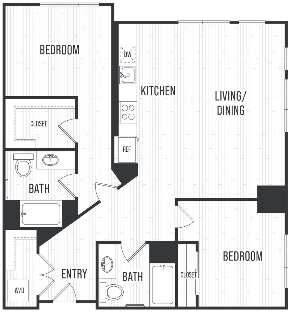 Modelo de apartamento: 1JDesde $2,6491 Dormitorio, 1 Baño, 727 sq ftDisponible Ahora![]()