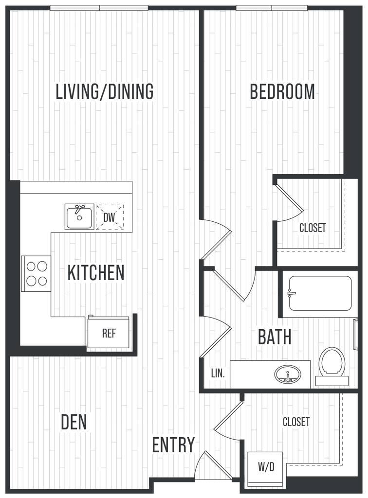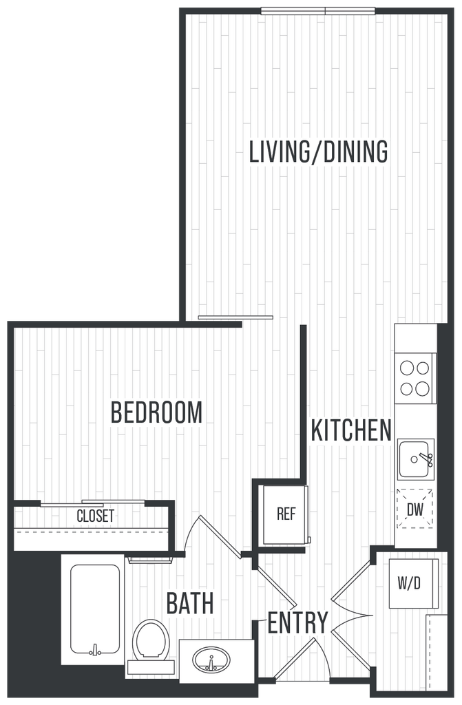 Modelo de apartamento: 1LDesde $2,7551 Dormitorio, 1 Baño, 786 sq ftDisponible Ahora![]()